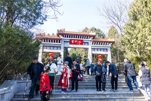 2026年2月,青州,晴日里,云门山山门的红灯与游人相映,一家老小拾级而上。在 “云门山” 的匾额下,定格了新春登高祈福的温情瞬间,传递着年节里的团圆与期许。