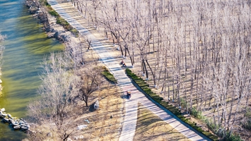 2026年2月,潍坊市弥河国家湿地公园,晴日铺洒在弥河湿地公园,水畔步道蜿蜒,疏林成阵。骑行者的身影点缀其间,枯荣交织的景致里,藏着人与自然相融的春日序曲。