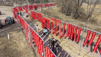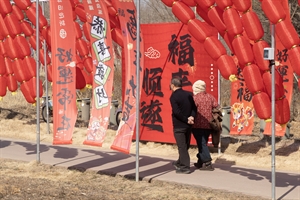 2026年2月,青州弥河湿地公园的新春福道上,红灯高挂,彩幅招展。一对老人相携而行,背影在暖光里格外温情,既映照着年节的红火,也定格了岁月相伴的安然与福气。