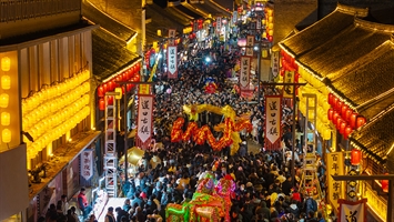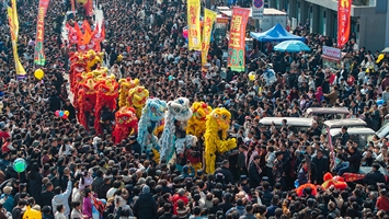 《正月社火燃古镇,彩狮闹春万人欢》
