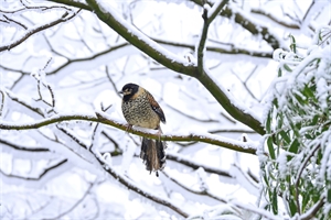 冬日雪枝,灵鸟小憩