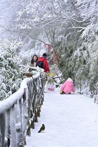 冬栏覆雪,珍鸟静立