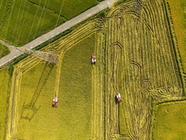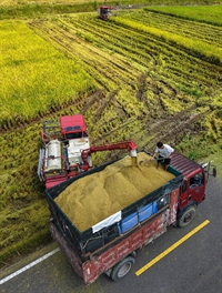 《机械收割稻满香》