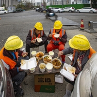城市建设者的露天餐桌