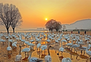 大漠长河映霞辉