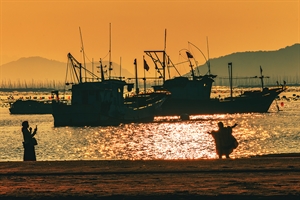 橙暮归舟伴岸声