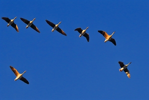 一湖秋色伴鹅行