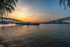 长江水上餐厅桥,和南京长江大桥。