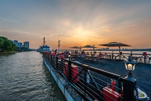 夕阳西下长江餐厅上