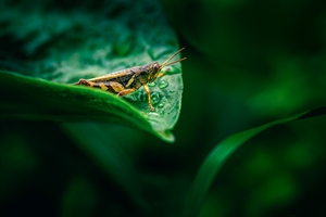 绿叶上的蚱蜢