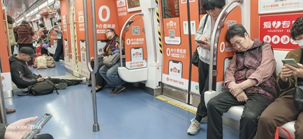 地铁上犯困的大妈