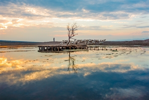 云湖草畔禽影