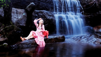 瀑下倩影