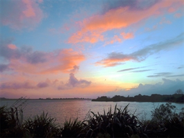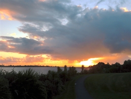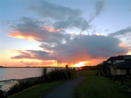 新西兰海滨绚丽的晚霞