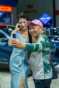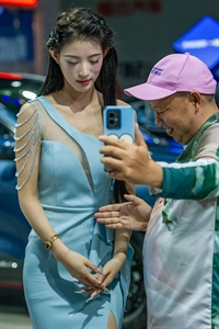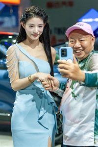车展上,看看这位老兄拍得多有劲!