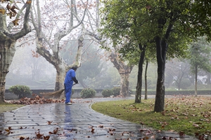晨起扫落叶