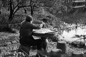 公园里练习书法的老者