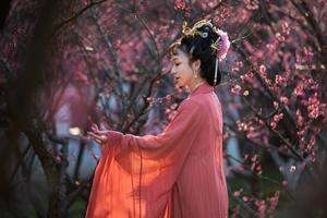 佳人轻抚花枝