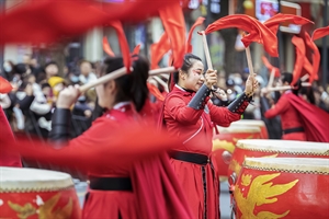 红绸飞舞鼓声震天