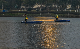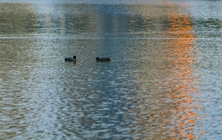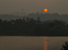夕阳映湖面