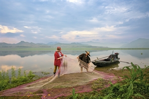 晨江渔影