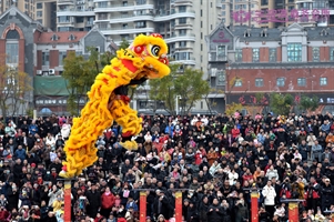 金狮狂舞闹元宵