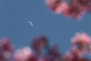 上弦月与樱花同框