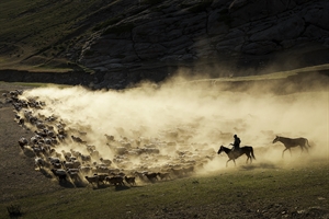 《霞光牧影》