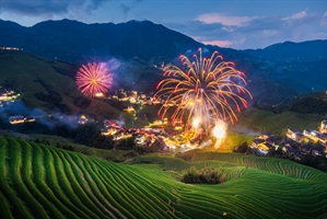 古寨狂欢夜,烟火映梯田