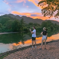 《古堰霞满天,远客摄余晖》