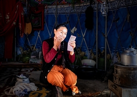 《毡房晨妆》