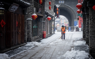 《静巷扫雪人》