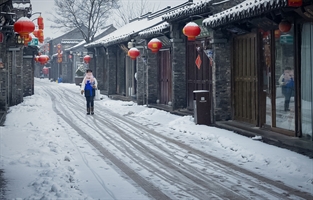 《古街冬望雪纷然》