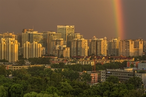 高楼林立彩虹飞