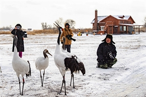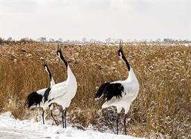 雪地拍摄丹顶鹤