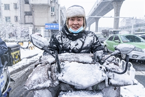 雪中骑行的外卖哥