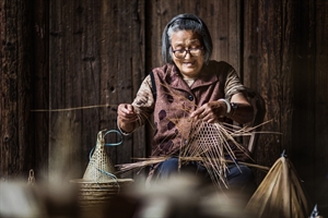 耄耋老人编斗笠+徐兰坤