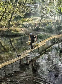 木板桥上的菜农