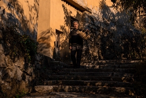 2025年3月9日,摄于广西南宁市宾阳县大桥镇明新村。在壮乡广西桂中南地区农村婚庆中,至今还流传着一种独特的习俗--“叉果子”。结婚当天,男方将新娘接回后,到了晚上7点半到8点左右,会请家族中两位命好的中年妇女为新人“铺处”(当地方言,意为为新郎、新娘布置新房、新床)。铺处时,铺处人会唱铺处歌,内容多为吉利、喜庆的话语,营造出浓厚的婚庆氛围。辅完处即燃放鞭炮发出“叉果子”的信号,负责抛果子的家人听到鞭炮信号声,即从高处或从围好栏栅的房门前往厅堂抛果子。此时,早已在此等候的村民们马上互相簇拥,以自带来的水桶、簸箕、袋子和篮子等用具争相“叉果子”(“叉果子”,当地方言,意思为抢检果子,寓意多子多福),场面既欢庆又激奋。所“叉”的果子在改革开放前较少,主要以楠子为主。改革开放后特别是近十年来,随着人们生活水平的提高,“叉”的果子种类繁多,数量增多,有的家庭户一次购回近千斤,有的购回近两千斤甚至数千斤,种类有沃柑、柑橘、台湾青枣、马蹄,还辅以糖饼等,前来“叉果子”的村民多的“叉”得数十斤、上百斤,少的也有十多斤,个个眉开眼笑,满载而归。“叉果子”习俗不但传承了桂中南地区农村婚庆的传统文化,而且体现了壮乡广西人民的热情好客和对美好生活的追求与向往。