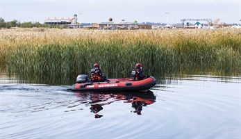 《芦苇湖中消防艇》