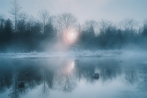 广东省广州市海印公园亲水平台,一位游泳爱好者从岸边跃入珠江,作者利用低位俯拍,泳者仿佛从广州地标小蛮腰上空的云朵掠过。
