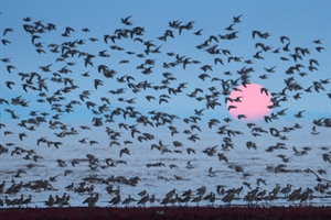 暮天下的鸟群潮汐