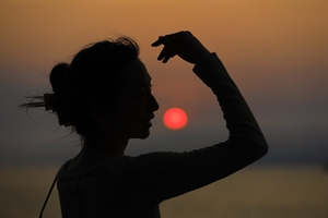 2025年7月3日,一位小男孩在重庆大足宝顶山卧佛前奔跑。