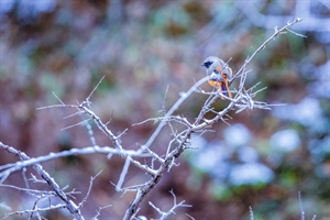 雪木枝上的北红尾鸲