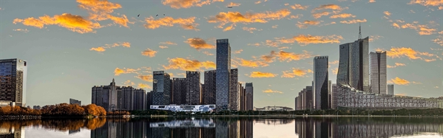 晚霞映湖景