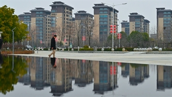 2024.3.21,安徽省歙县,新安江畔的新农村建设日新月异,景色优美,朝阳下的乡村河流呈现生动的金色画面。