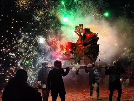 《传承百年的广东霞东村舞火烧麒麟》