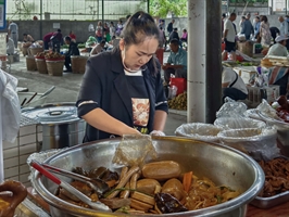 市场烟火气——忙碌的卤肉摊主