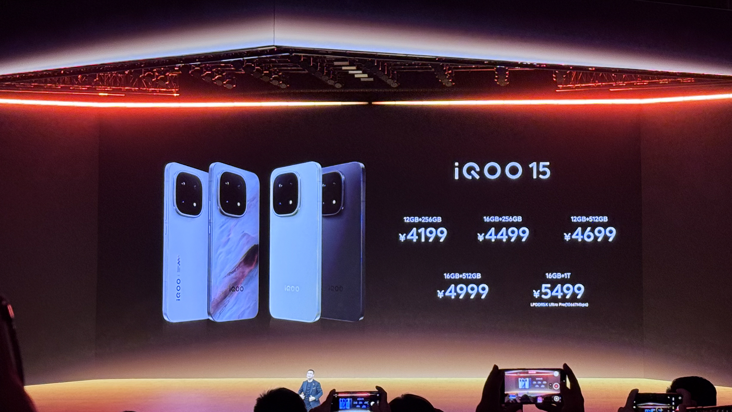 iQOO 15 共有 5 个版本可供选择,12GB+256GB 版本售价 4199 元;16GB+256GB 版本售价 4499 元;12GB+512GB 版本售价 4699 元;16GB+512GB 版本售价 4999 元;16GB+1TB 版本售价 5499 元;iQOO 15(iQOO × 王者荣耀十周年典藏版)售价 5499 元;iQOO 15 将于 10 月 20 日发布会后在 vivo 官网、京东、天猫、拼多多、抖音、快手等渠道正式发售,即刻抢购,限时可享最高 24 期免息;iQOO 线下专卖店、电竞馆、vivo体验店及各大授权门店同步开售;旷野配色将于 10 月 31 日上午 10 点正式开售。