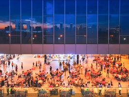 云南省西双版纳景洪告庄夜市,灯火璀璨,人声鼎沸。